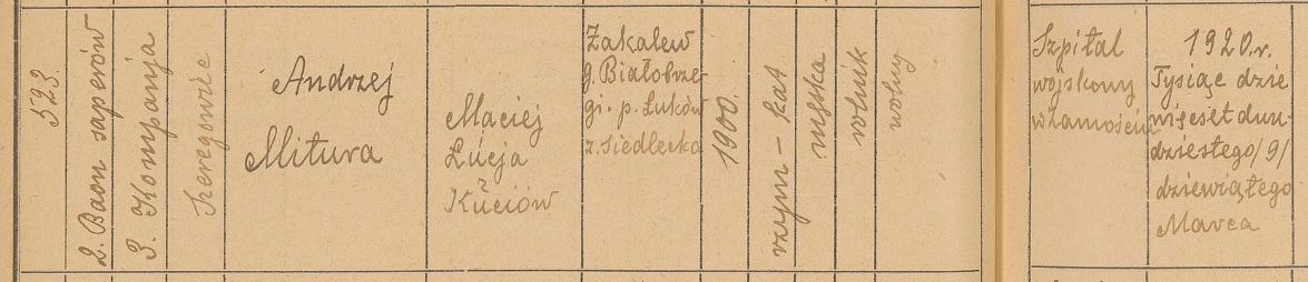 - Tomasz Mitura syn Macieja lat 22, żona Katarzyna zd. Kępa.