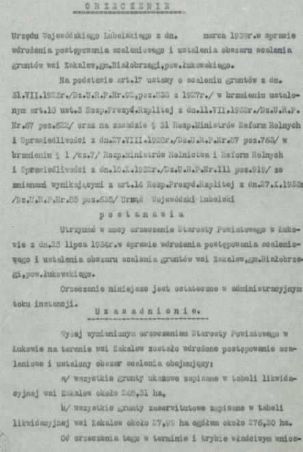 Orzeczenie Urzędu Wojewódzkiego Lubelskiego w sprawie odwołania gospodarzy wsi Zakalew.